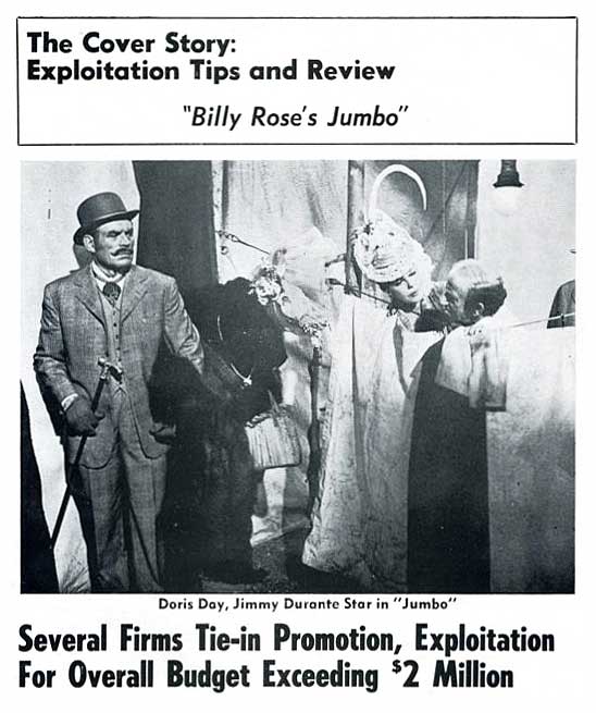 Columbia Records is betting that its original soundtrack of Jumbo, featuring Rodgers and Hart Songs sung by the star of the pictures and one of its all-time top warblers, Doris Day, will be one of the hottest selling albums of the pre-Christmas season and is backing this theory with heavy advertising and promotion.