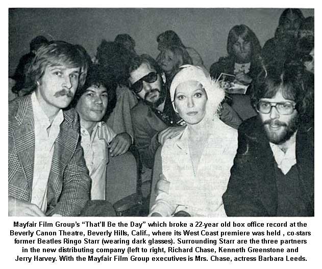HOLLYWOOD – Mayfair Film Group, a new independent distribution company headed by three co-directors under 30 years of age, kicked off its release schedule with the British import That’ll be the Day, starring David Essex and Ringo Starr, breaking house records at the Beverly Cannon Theatre Wednesday, October 30.