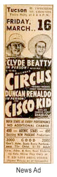 Renaldo and Carrillo appeared with the Cole Brothers Circus in Chicago in 1953. They were the Cicso Kid and Poncho, featured with the Tim Packs ball park in 1954. When the Clyde Beatty Circus opened in California in 1956 it featured Renaldo. He did not remain with the show for very long. For a short time Renaldo was with James Brothers Circus in the late 1950s.