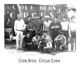 The Cole Brothers Circus was started in 1906 and was named after W.W. “Chillie Billie” Cole, the first man to make one-million dollars in the circus business. On Feb, 20,, 1941, the winter quarters suffered one of the worst circus fires in history burning the winter quarters to the ground. There was no loss of human life but over 18 animals died; 2 elephants, 2 zebras, 2 llamas, 6 lions, leopards, 2 audads, a sacred Indian cow, a pigmy hippo and an unknown amount of monkeys. Circus tents were coated with paraffin wax dissolved in gasoline, a common waterproofing method of the time. If the tent caught