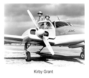 d. In 1941 he started to use the stage name of Kirby Grant appearing in 50 movies with quite a few of them starring roles. Grant is remembered for was the 72 episodes staring in the Sky King TV series starting with Operation Urgent (1952) and finishing with Mickey’s Birthday (1959). In the plot line Sky (played by Grant) was a cowboy style Arizona rancher who also was an airplane pilot. In each episode he would hop in his airplane (Songbird) and capture a bad guy, catch a spy or find a lost hiker. He and his niece Penny (and sometimes Clipper, his nephew) lived on the Flying Crown Ranch. While both were pilots too, they were not that experienced and always had to look to their uncle for guidance. Aerial footage on Sky King was handled by aviation instructor/stuntman Paul Mantz, a one time advisor to aviatrix Amelia Earhart. Grant once told me, “Some of that hairy flying he did made me look awfully good.”