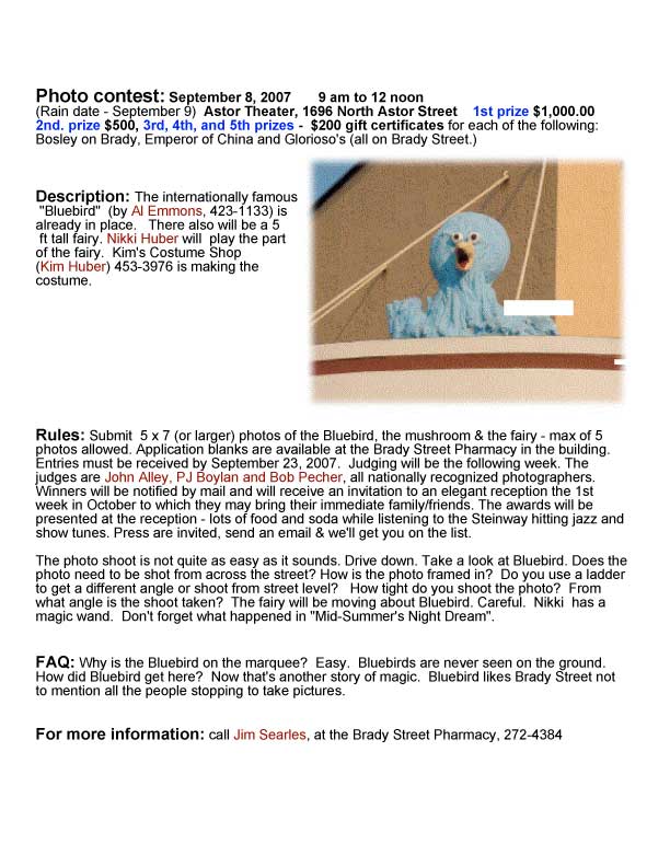 All performances take place at the Astor Theater, located inside the Brady Street Pharmacy, 1696 N. Astor St. (Astor and Brady). Call 414-272-5694 or 414-272-4384 for tickets. Back to events