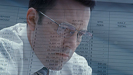 One other nice feature of the film is its graphic novel visuals. The cinematography of Seamus McGarvey places every key composition against an interesting context. In one scene Wolff writes columns of numbers across the glass walls of a conference room to find the leak in the financial laundry. The shots of Affleck surrounded by rows of numerical figures are memorable, suggesting the detailed genius of an extraordinary brain struggling to express itself within the confines of a stale modern society. One of the principle benefits in the rise in graphic sources to modern cinema is just this kind of slightly exaggerated Marvel Comic storytelling. It is evident even in the