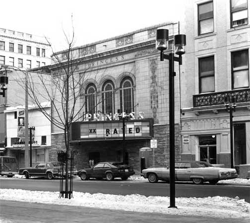 The Davidson Hotel's porch-like canopy at 625 N. 3rd St., also served as the covered entrance to the DAVIDSON THEATER, the wall of which is seen behind the hotel, at the extreme right. View is to the northwest. Davidson Theater newspaper ad The Princess Theater was renovated to a Art Deco look in the 1930s, eliminating all traces of the original Art Nouveau design. The facade was further altered by adding a lannonstone front to the lower portion. Theater is seen here in the 1980s, a distant memory of its once grand stature.