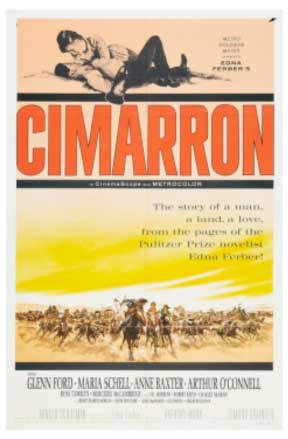 (Editors notes: The original Cimarron (1931, was based on Edna Ferber’s novel Cimarron picking up three Academy awards. Blacks, Jews, Indians: all hit to the stereotypes typical of the era. “Sabra Cravat refers to American Indians as "dirty, filthy savages" and refuses to allow her son to accept a gift of feathered headgear from a Cravat, has a more sympathetic view, acknowledging that the Indians in the back of the church are not expected to give a monetary contribution to the purchase of a white man's church organ as they have had their land stolen by the white men.” “Yancey's open minded view of non-whites contradicts his urges to participate in claims for newly opened land in the West bought by the government from the Cherokees for far less than its market value – the "Oklahoma Land Rush." Calling the Cherokees dirty savages was bad but stealing their land was good.