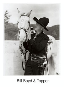 ly becoming a matinée idol and earning upwards of $100,000 a year. In an early movie Hoppy kissed Evelyn Brent on the forehead as she was dying. His fans saw this as unmanly, so all future romance was left to his partners, and there was a different leading lady in each picture. With the end of silent movies, Boyd was without a contract, couldn't find work and was going broke. By mistake his picture was run in a newspaper story about the arrest of another actor with a similar name William “Stage” Boyd on gambling, liquor and morals charges, hurting his career. In 1935 he was offered the lead role in Hop-a-long Cassidy, named because of a limp caused by an earlier bullet wound. He changed the original pulp-fiction character to its opposite, made sure that "Hoppy" didn't smoke, drink, chew tobacco or swear, rarely kissed a girl and let the bad guy draw first. By 1943 he had made 54 Hopalong Cassidy movies. In 1948 Boyd, in a savvy and precedent-setting move, bought the rights to all his pictures. He had to sell his ranch to raise the money, just as TV was looking for Saturday-morning Western fare. By 1950 he was the hottest name in television. The last film that he was in was in a cameo role riding his white horse "Topper" during the circus parade inside the tent of the movie The Greatest Show on Earth (1952). His filmography consists of 140 titles which includes the TV series.
