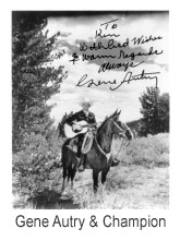 Gene Autry 1907-1998. He was born in Texas and moved with his parents to Oklahoma in the 1920s. He worked on his father's ranch while at school. After leaving high school in 1925, he worked as a railroad telegrapher for the St. Louis-San Francisco. He would sing and play the guitar to pass the hours. One of the customers, Will Rogers, heard him singing. Will Rogers was a genuine American cowboy, vaudeville performer and movie star humorist who loved to make fun of politicians. In 1928, Autry was singing on Tulsa’s radio station KVOO as "Oklahom