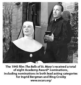 Films about religious people and religious events have had similar success. The Bells of St. Mary’s (1945), Going My Way (1944), The Song of Bernadette (1943), Boy’s Town (1938), and, more recently, Chariots of Fire (1984) have all become cult films for many American Christians.