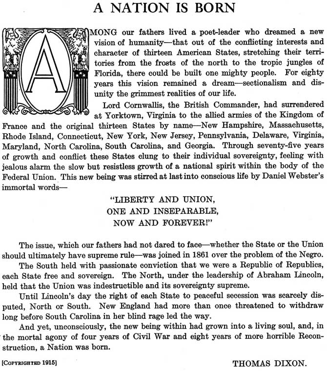 Ref. http://en.wikipedia.org/wiki/The_Birth_of_a_Nation