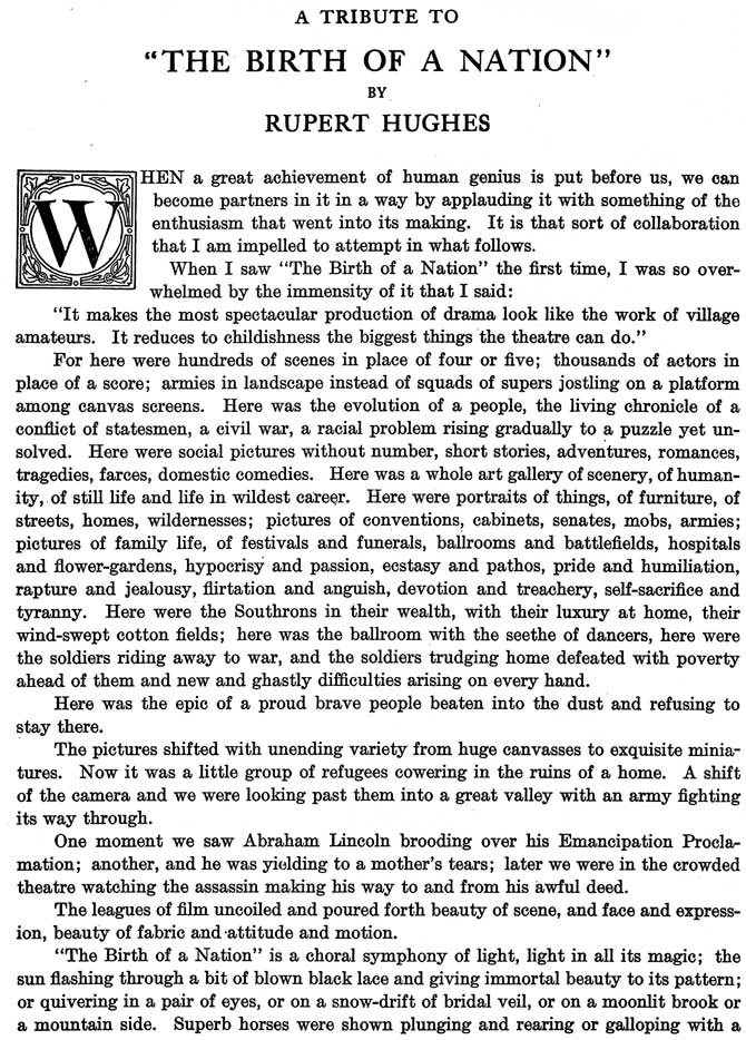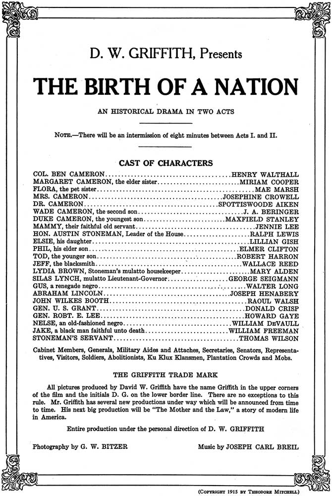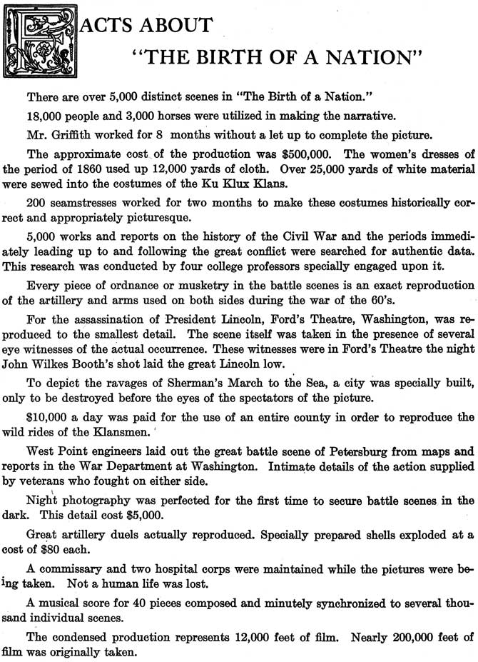 Souvenir Booklet from D.W. Griffith's "The Birth of a Nation" in 1915. | |||||||||||||||||||||