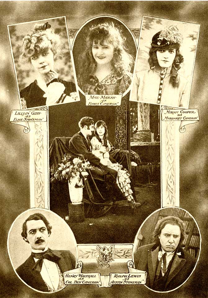 The film was originally presented in two parts separated by an intermission. Part 1 depicts pre-Civil War America, introducing two juxtaposed families: the Northern Stonemans, consisting of abolitionist Congressman Austin Stoneman (based on real-life Reconstruction-era Congressman Thaddeus Stevens), his two sons, and his daughter, Elsie, and the Southern Camerons, a family including two daughters (Margaret and Flora) and three sons, most notably Ben.