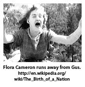 Then Gus, a murderous former slave with designs on white women, crudely proposes to marry Flora. She flees into the forest, pursued by Gus. Trapped on a precipice, Flora leaps to her death to avoid letting herself be raped. In response, the Klan hunts Gus, lynches him, and leaves his corpse on Lieutenant Governor Silas Lynch's doorstep. In retaliation, Lynch orders a crackdown on the Klan. The Camerons flee from the black militia and hide out in a small hut, home to two former Union soldiers, who agree to assist their former Southern foe