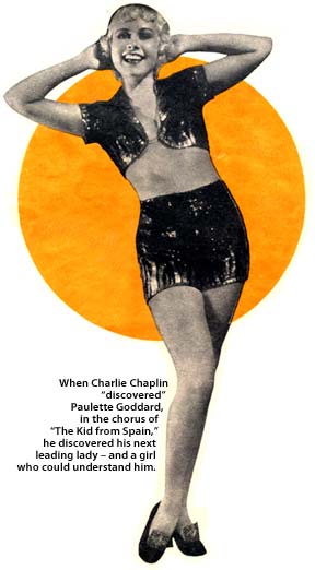 ersonality at the time she appeared in the Cantor picture is in some ways remarkable, for despite the fact that she did attract much individual attention, she was not the unusual type that she is to-day. Blonde hair makes all women more or less alike in the movie colony. It is supposed to soften the face, but in Paulette's case it had exactly the opposite effect. Since she has permitted her hair to become its more natural brunette shade, she is infinitely less flaunting and brittle looking than formerly; she exhibits a more delicate and better-molded beauty. Hollywood admits to seeing in her far more than at the outset. The colony never felt then that she had a future professionally. Once more, therefore, Charlie appears as the discoverer.