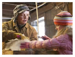 The farm is an icon—the farm, the small family, the fire and rocking chair, and meals where grace is said whether eyes are closed or not, and snow falling faintly and faintly falling over the landscape, Whittier’s America and one still alive though suffocating now in the heavy air of political correctness and urban bias. You know as soon as the agency wagon pulls up to Patti and Scott’s house that this home will become Julia’s salvation, and that the little girl will likewise save those inside. And the bunny lady will save Julia, and Julia will save her.