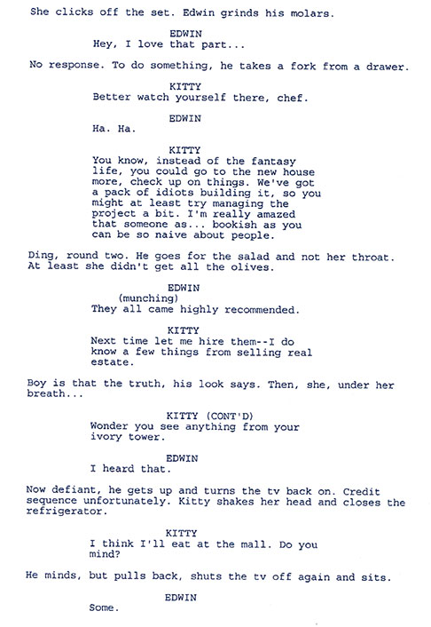 As for the script on my desk that I wrote, called Academic Affairs, it has a long journey before someone loves and makes it real. Years ago, a consultant for Act One, a company that advises writers on bettering their work, told me to turn the thing into a novel. It reads more like novel material, he argued, word and not image-driven. That would be the easy route. Write a novel, pitch it to a publisher, and tell all my friends.
