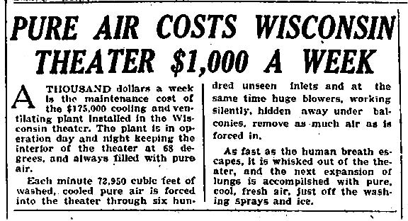The theatre used air-cooling that pre-dated today’s air-conditioning systems. Under the seats, the air handlers pushed the air return over massive banks of pipes running cold water. It was a complicated expensive system to operate. One of the noted features at the theatre was the highly trained usher and the building took a large crew of them to operate.