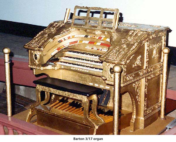 Editors note: Part of the information on the Barton 3/17 organ came from an article on the Patio Theatre’s Barton 3/17 www.catoe.org/patio.html Back to topics