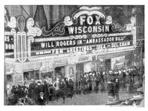 Typical of the times, the theatre ran both shows and movies. The Four Ink Spots was one of many nationally known artists to appear on the stage of the Wisconsin theater. Harry Holloway headed up the Milwaukee Sentinel Talent Quest as one of the stage shows.