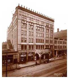 in “The Masked Ball,” Maude Adams was playing opposite him. John’s sister, Georgie Drew Barrymore, starred in “Mr. Wilkinson’s Widow,” hardly foreseeing that her three children, Lionel, Ethel and John, would be on that same stage many times in the years ahead. Her husband, Maurice, along with Holbrook Blinn, was only a supporting player to Marie Burroughs in “The Battle of the Strong.” As the 20th century moved along, the Davidson’s stars and dramas formed a galaxy. There were 30 to 40 road shows a year, and a summer-stock company, too. Pauline Lord was a particular favorite of the stock audiences. A glance through the programs reveals William Gillette in “Sherlock Holmes,” Olga Nethersole in the wicked “Sapho,” James (father of Eugene) O’Neill in “The Count of Monte Cristo,” De Wolf Hopper, Ditmar Poppen in "The Student Prince," Dustin Farnum, the four Cohans, Henry B. Walthall, David Warfield, Minnie Maddern Fiske, and so on, right up to Katharine Hepburn, Melvyn Douglas, Edward G. Robinson and Van Heflin (the latter four returning to the stage from Hollywood). The wheel had come full cycle before the wreckers moved in on March,1954. A department store and hotel firm, which owned the site, found a more profitable use for it. The Davidson’s final attraction was the Canadian National Ballet Company” Theatre Arts (magazine) , April 1958, Famous American Theatres by Walter Monfried, Theatre and Music Editor of the Milwaukee Journal. Back to HISTORY topics