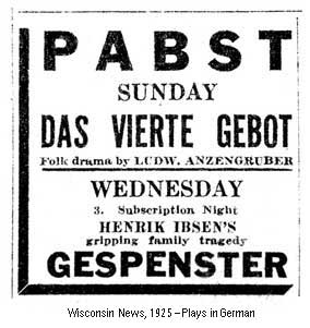The Pabst enjoyed many more seasons of German touring companies and also hosted the resident German theatre groups, interspersed with occasional English language occasions. With the outbreak of World War I, things changed drastically for the Pabst. No longer were German touring companies available, and in the Teutophobic days that ensued, anythi