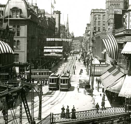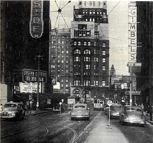 Pabst building center, Gimbel's right, 1949.