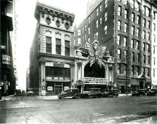 The Pabst Theater around 1920, looking east on Onieda (Wells) St. towards City Hall