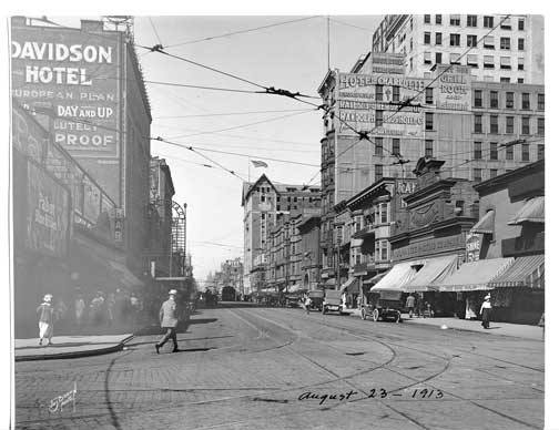The Davidson Theater's Marquee (left) looking north on Third St. Aug. 23, 1913