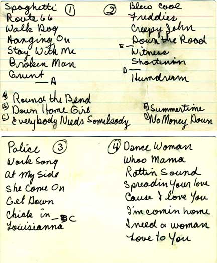 Now the group had made up enough tunes to play four full sets, about 34 tunes in all, and could play a full evening's show with hardly any repeats. The group