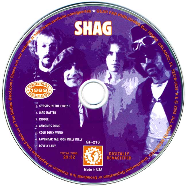 the Shag recorded an album of their own original tunes. The group eventually disbanded in the early 1970’s and each member followed their own direction. Their 1969 LP release was digitally remastered in 2005 by Gear Fab Records (GF-216) and made available for sale online listed as Garage Band and Psych-Rock music. See http://gearfab.swiftsite.com and click on Catalog.